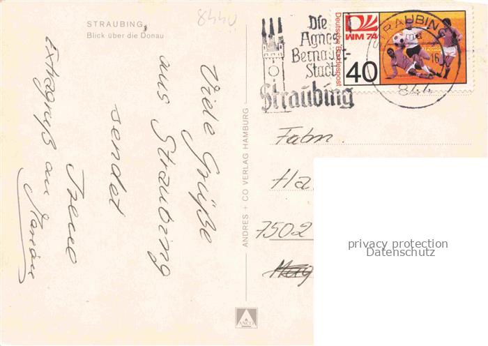 74049243 alte Postkarte Straubing Blick ueber die Donau Bruecke postalisch gelaufen Erhaltung siehe scans [FriedD77] KatCode: 11110009263000