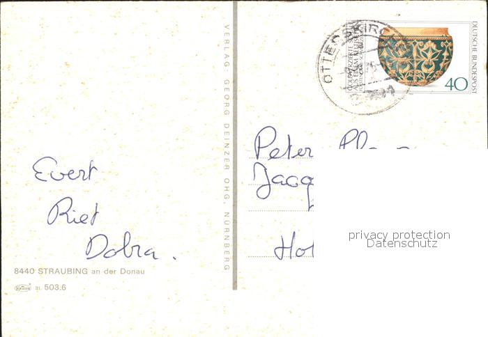 72205758 alte Postkarte Straubing Blick vom Passauer Tor Donaupartie Ludwigsplatz Theresienplatz postalisch gelaufen Erhaltung siehe scans KatCode: 11110009263000