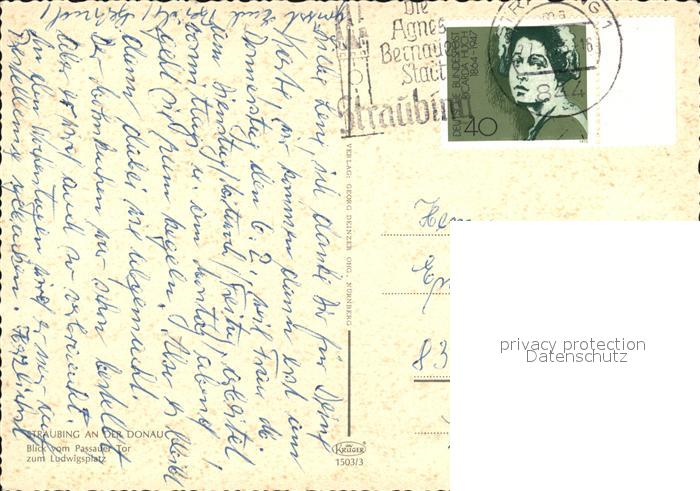 72473488 alte Postkarte Straubing Blick vom Passauer Tor zum Ludwigsplatz postalisch gelaufen Erhaltung siehe scans KatCode: 11110009263000