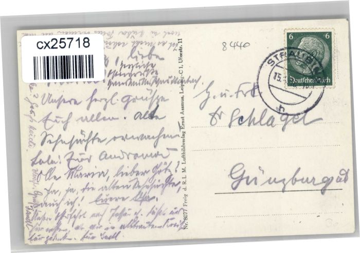 30826880 alte Postkarte Straubing Fliegeraufnahme postalisch gelaufen KatCode: 11110009263000