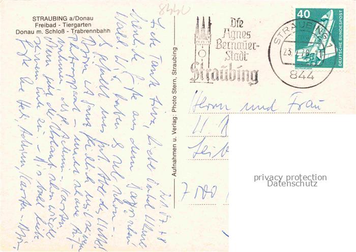 74049255 alte Postkarte Straubing Freibad Tiergarten Donau Schloss Trabrennbahn postalisch gelaufen Erhaltung siehe scans [FriedD77] KatCode: 11110009263000