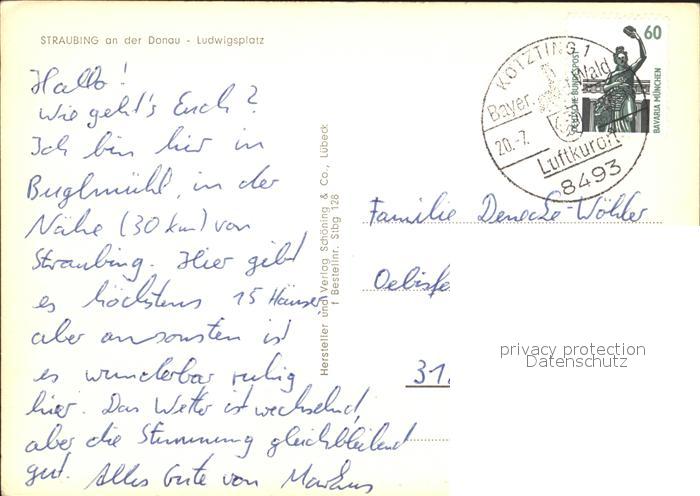 72046355 alte Postkarte Straubing Ludwigsplatz postalisch gelaufen KatCode: 11110009263000