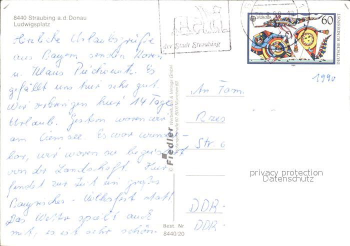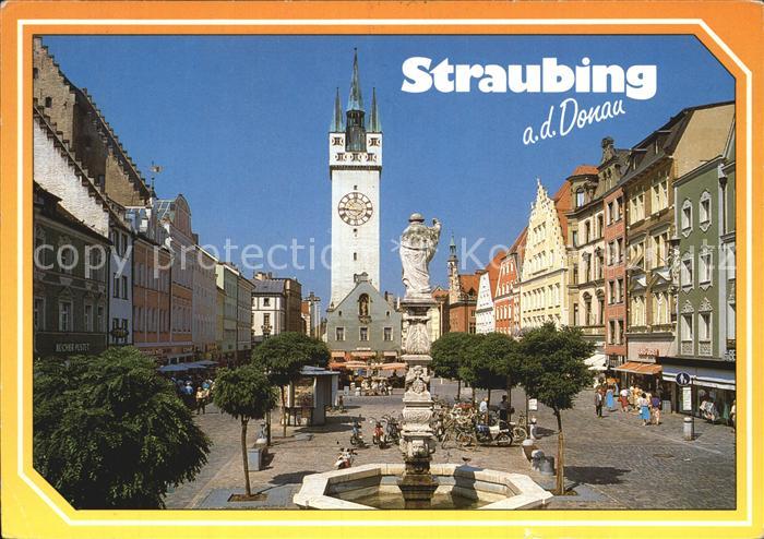 72525201 alte Postkarte Straubing Ludwigsplatz Brunnen postalisch gelaufen Erhaltung siehe scans KatCode: 11110009263000
