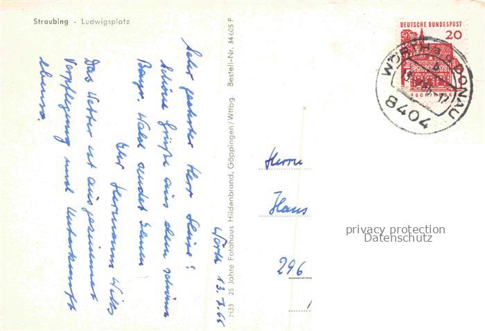 34144644 alte Postkarte Straubing Ludwigsplatz mit Stadtturm postalisch gelaufen Erhaltung siehe scans [FriedD77] KatCode: 11110009263000