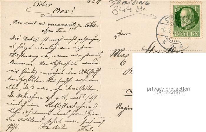 43019818 alte Postkarte Straubing Maennergruppe Feier Gruppenbild postalisch gelaufen Erhaltung siehe scans [FriedD77] KatCode: 11110009263000