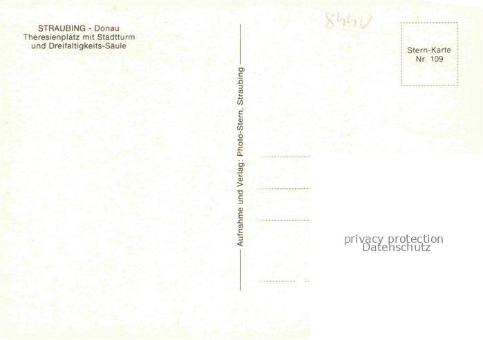 74049241 Straubing Theresienplatz Stadtturm Dreifaltigkeitssaeule postalisch nicht gelaufen Erhaltung siehe scans [FriedD77] KatCode: 11110009263000