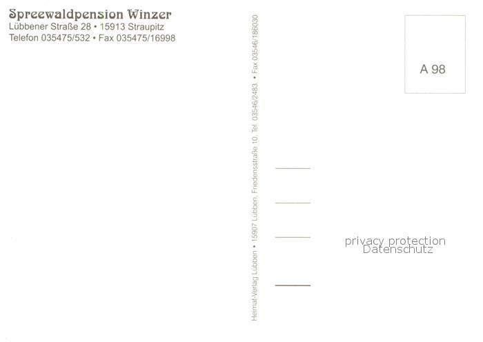 73648044 Straupitz Spreewaldpension Winzer Gaststube Bar Bootsfahrt Zimmer Storchennest postalisch nicht gelaufen Erhaltung siehe scans [WerneD78] KatCode: 11110012061476