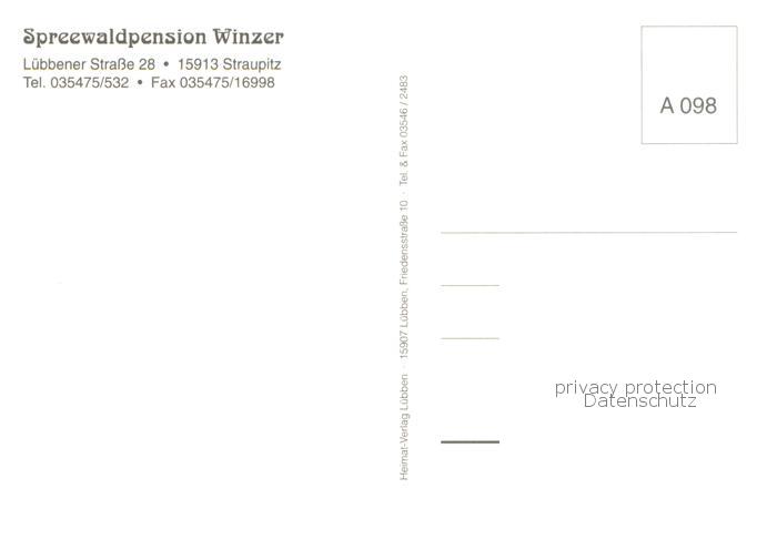 73754932 Straupitz Spreewaldpension Winzer Gaststube Bootspartie Zimmer Storchennest postalisch nicht gelaufen Erhaltung siehe scans [FriedD77] KatCode: 11110012061476