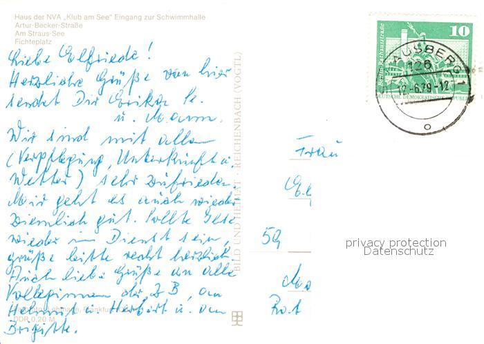 72972637 alte Postkarte Strausberg Brandenburg Haus der NVA Klub am See Artur Becker Strasse Schwaene am Straussee Fichteplatz postalisch gelaufen Erhaltung siehe scans [FriedD77] KatCode: 11110012064472