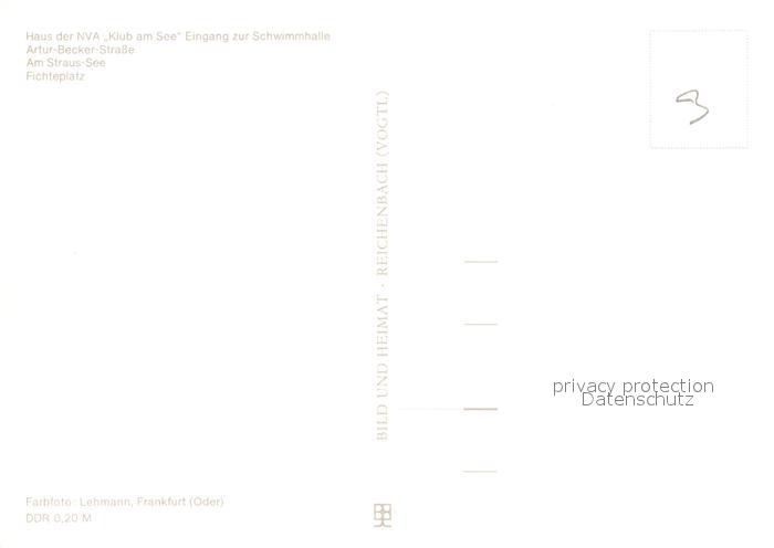 72996250 Strausberg Brandenburg Haus der NVA Klub am See Schwimmhalle Artur Becker Str Straus See Fichteplatz postalisch nicht gelaufen Erhaltung siehe scans [WerneD78] KatCode: 11110012064472