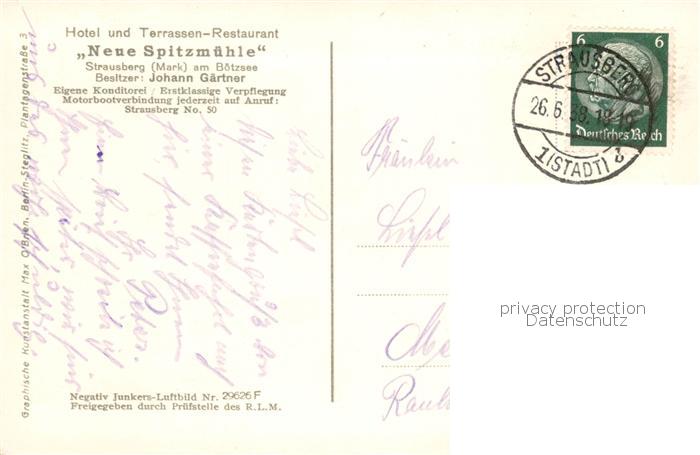 73820871 alte Postkarte Strausberg Brandenburg Hotel Neue Spitzmuehle am Boetz und Faengersee Fliegeraufnahme postalisch gelaufen Erhaltung siehe scans [WerneD78] KatCode: 11110012064472