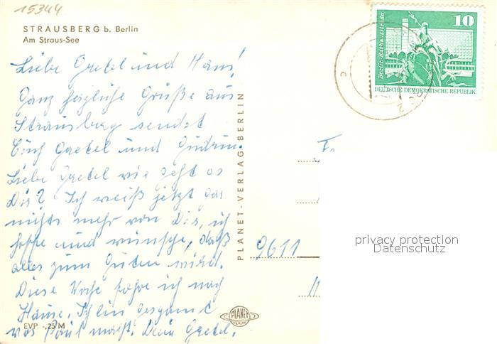 73319613 alte Postkarte Strausberg Brandenburg Partie am Straussee postalisch gelaufen Erhaltung siehe scans [FriedD77] KatCode: 11110012064472