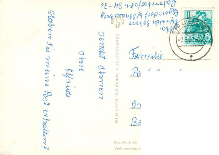 73879820 alte Postkarte Straussberg Thueringen Jugendherberge Kaethe Kollwitz Straus See Diesterwegschule Volksbad Teil der alten Stadtmauer postalisch gelaufen Erhaltung siehe scans [FriedD77] KatCode: 11110016065083