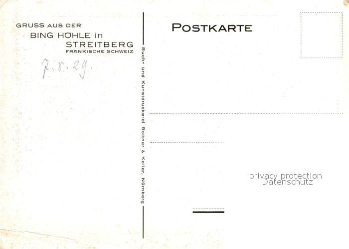 43002844 Streitberg Oberfranken Bing Hoehle Schauertal Tropfsteinhoehle Kuenstlerkarte postalisch nicht gelaufen Erhaltung siehe scans [FriedD77] KatCode: 11110009474176