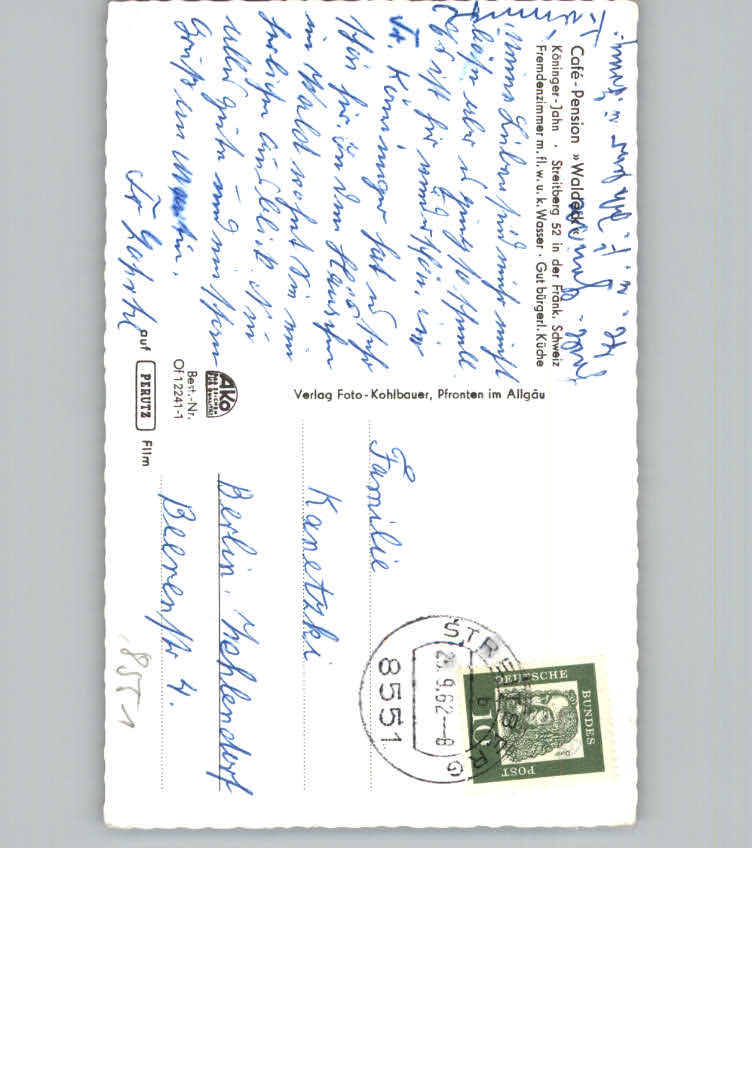 31163196 Streitberg Oberfranken Cafe Pension Waldeck postalisch nicht gelaufen KatCode: 11110009474176