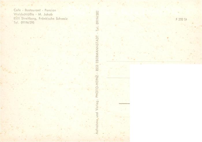 73932255 Streitberg Oberfranken Cafe Restaurant Waldschloessle postalisch nicht gelaufen Erhaltung siehe scans [WerneD78] KatCode: 11110009474176