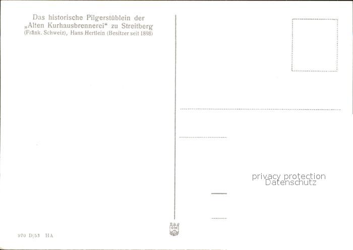 41815726 Streitberg Oberfranken Historisches Pilgerstueblein Alte Kurhausbrennerei Zunftschild Ritterfenster Fresko postalisch nicht gelaufen Erhaltung siehe scans KatCode: 11110009474176
