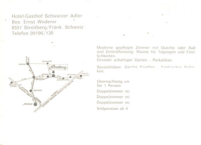 73932231 Streitberg Oberfranken Hotel Gasthof Schwarzer Adler Gastraeume Zimmer postalisch nicht gelaufen Werbekarte (keine Postkarte) Erhaltung siehe scans [WerneD78] KatCode: 11110009474176