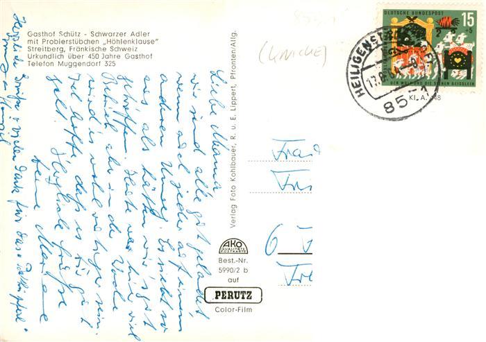 73932241 alte Postkarte Streitberg Oberfranken Hotel Schuetz Schwarzer Adler Gastraeume postalisch gelaufen Erhaltung siehe scans [WerneD78] KatCode: 11110009474176