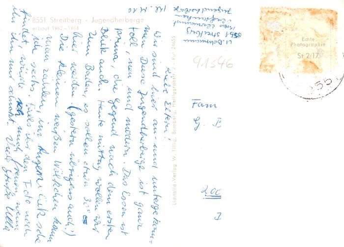 73884504 Streitberg Oberfranken Jugendherberge von Osten Panorama Innenhof Aufenthaltsraum postalisch nicht gelaufen Erhaltung siehe scans [WerneD78] KatCode: 11110009474176