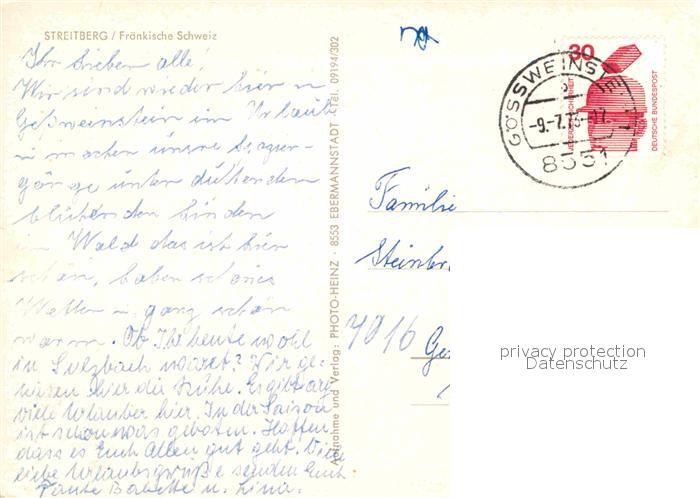 72783553 alte Postkarte Streitberg Oberfranken Panorama postalisch gelaufen Erhaltung siehe scans [WerneD78] KatCode: 11110009474176