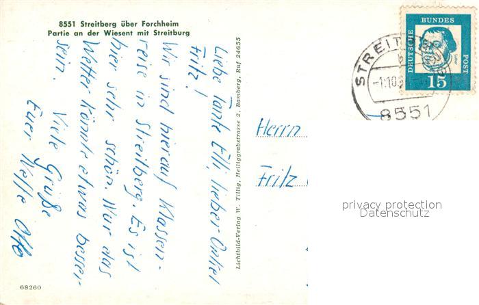 73131722 alte Postkarte Streitberg Oberfranken Partie an der Wiesent mit Streitburg postalisch gelaufen Erhaltung siehe scans [FriedD77] KatCode: 11110009474176