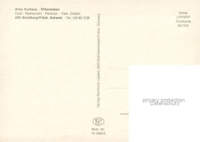 73650054 Streitberg Oberfranken Pension Altes Kurhaus Ritter Stuben postalisch nicht gelaufen Erhaltung siehe scans [WerneD78] KatCode: 11110009474176