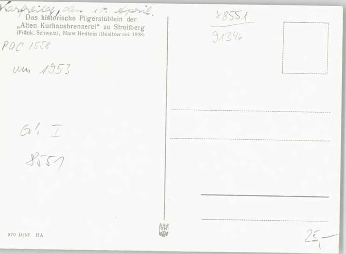 40233948 Streitberg Oberfranken Pilgerstüblein * 1955 KatCode 11110009474176
