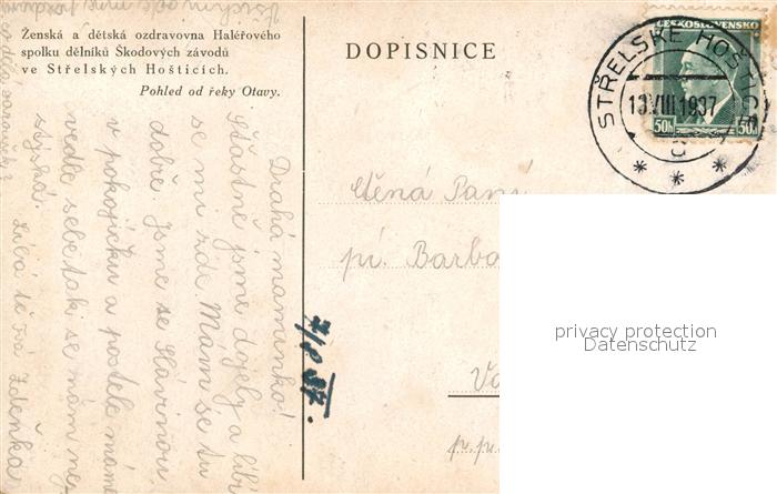 old postcard Strelske Hostice Strahl Hoschtitz Pohled od reky Otavy postalisch gelaufen Erhaltung siehe scans [WerneD78]