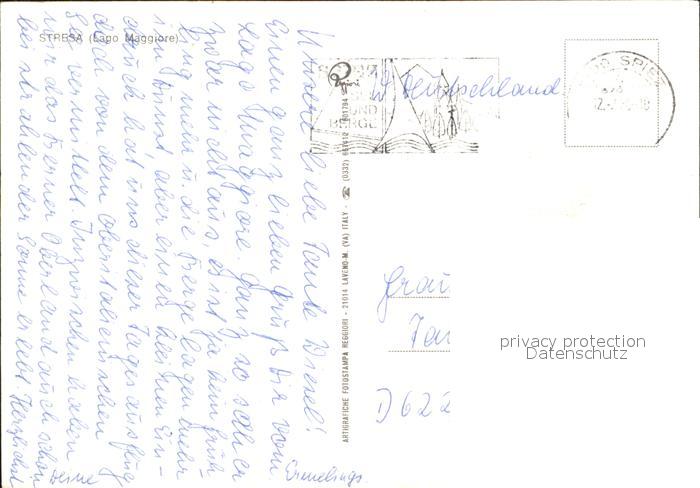 old postcard Stresa Lago Maggiore Baumbluete Insel Alpenpanorama postalisch gelaufen Erhaltung siehe scans