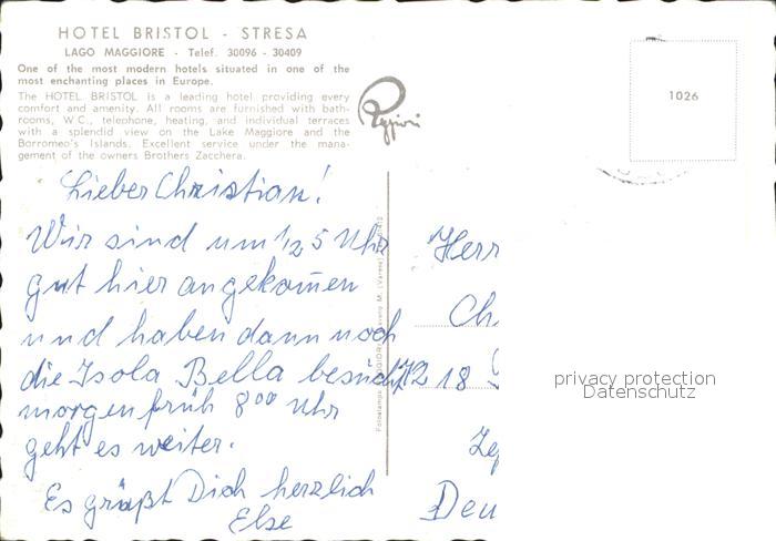 old postcard Stresa Lago Maggiore Hotel Bristol postalisch gelaufen Erhaltung siehe scans