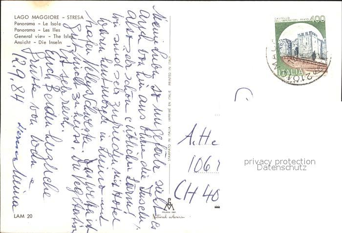 old postcard Stresa Lago Maggiore Insel postalisch gelaufen Erhaltung siehe scans