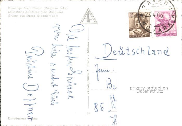 old postcard Stresa Lago Maggiore Isola Bella Pescatori Lungolago Panorama postalisch gelaufen Erhaltung siehe scans