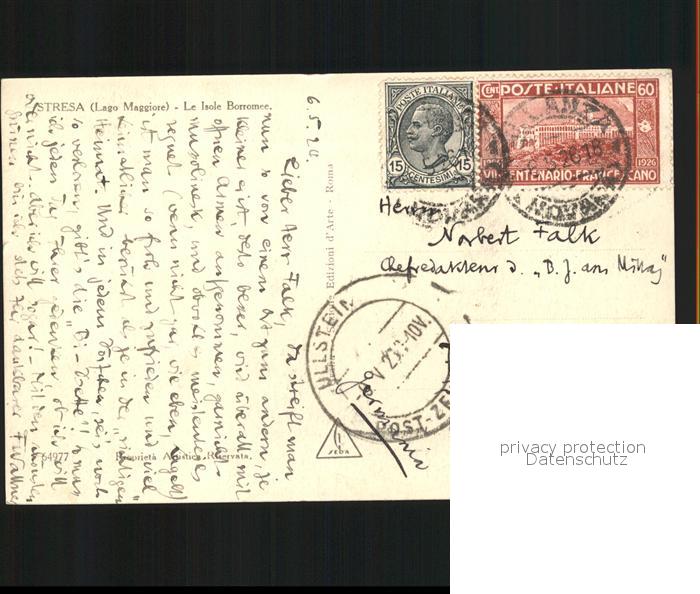 old postcard Stresa Lago Maggiore Isole Borromee postalisch gelaufen Erhaltung siehe scans