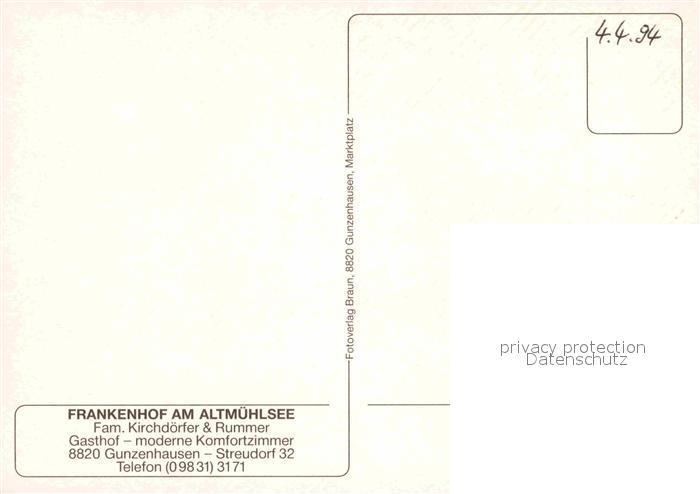 72714607 Streudorf Mittelfranken Gasthof Frankenhof am Altmuehlsee postalisch nicht gelaufen Erhaltung siehe scans [FriedD77] KatCode: 11110009577136