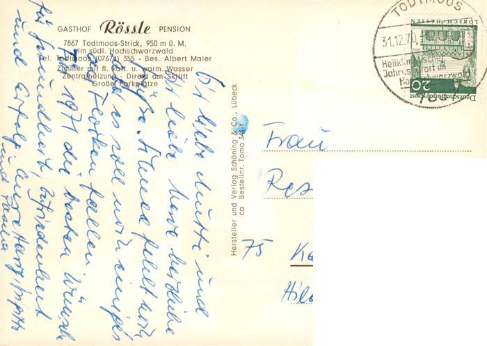 73935135 Strick-Todtmoos Gasthof Roessle Pension Winterpanorama postalisch gelaufen Erhaltung siehe scans [WerneD78] alte Postkarte Wern Katcode 11110008337108