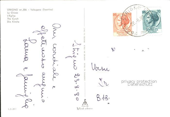 old postcard Strigno Chiesa postalisch gelaufen Erhaltung siehe scans