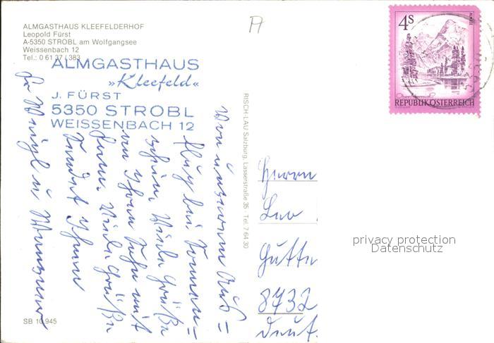 72067201 alte Postkarte Strobl Almgasthaus Kleefelderhof Terrasse postalisch gelaufen Erhaltung siehe scans KatCode: 11390323050336