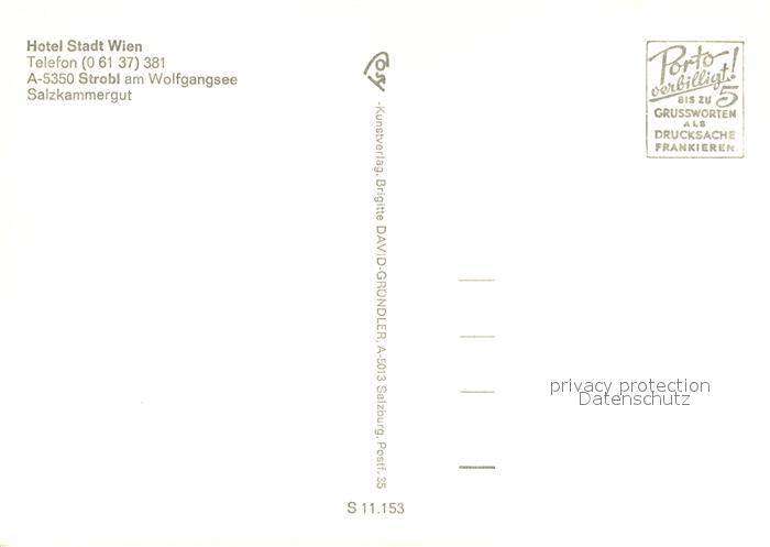 73642870 Strobl Hotel Stadt Wien Restaurant am Wolfgangsee postalisch nicht gelaufen Erhaltung siehe scans [FriedD77] KatCode: 11390323050336