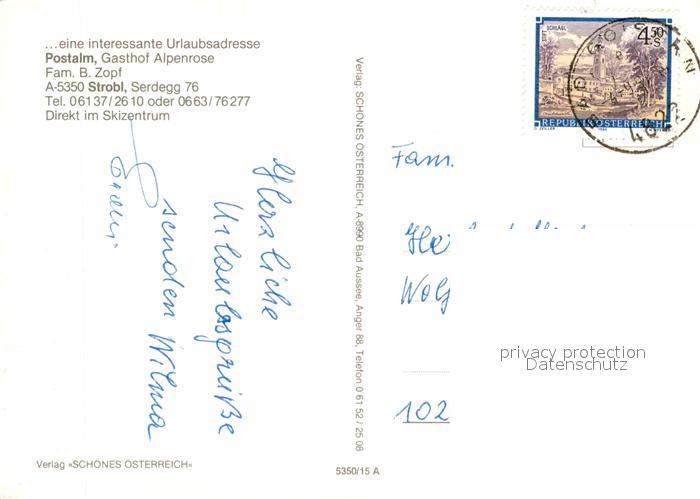 72792995 alte Postkarte Strobl Postalm Gasthof Alpenrose postalisch gelaufen Erhaltung siehe scans [NatalD47] KatCode: 11390323050336