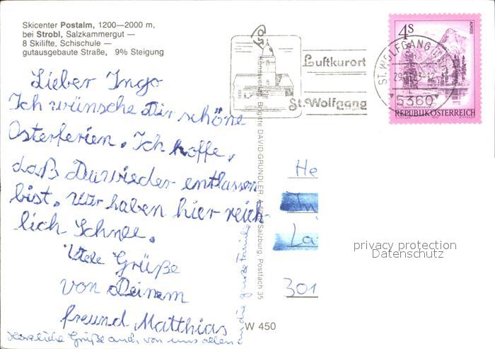 72309203 alte Postkarte Strobl Postalm Skigebiet postalisch gelaufen Erhaltung siehe scans KatCode: 11390323050336
