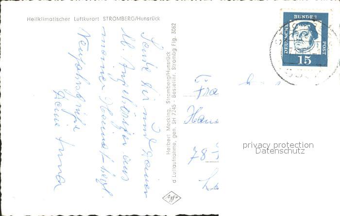 72052131 alte Postkarte Stromberg Hunsrueck Fliegeraufnahme postalisch gelaufen Erhaltung siehe scans KatCode: 11110007133103
