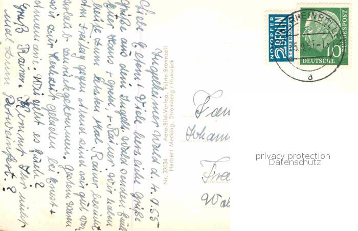 72750105 alte Postkarte Stromberg Hunsrueck Fliegeraufnahme postalisch gelaufen Erhaltung siehe scans [AndreD76] KatCode: 11110007133103
