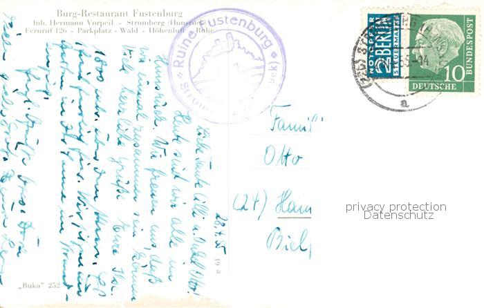 73810254 alte Postkarte Stromberg Hunsrueck Fustenburg postalisch gelaufen Erhaltung siehe scans [WerneD78] KatCode: 11110007133103