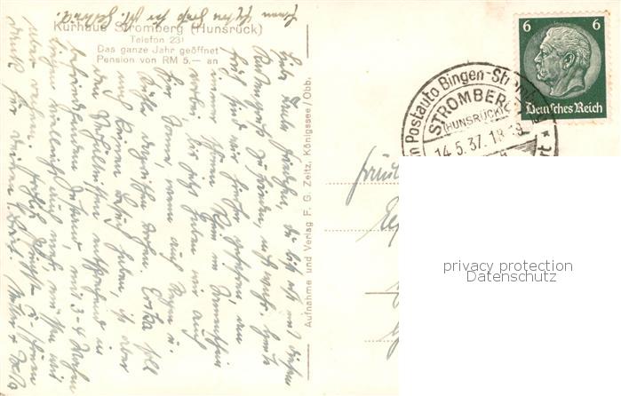 73810255 alte Postkarte Stromberg Hunsrueck Panorama mit Fustenburg und Kurhaus postalisch gelaufen Erhaltung siehe scans [WerneD78] KatCode: 11110007133103