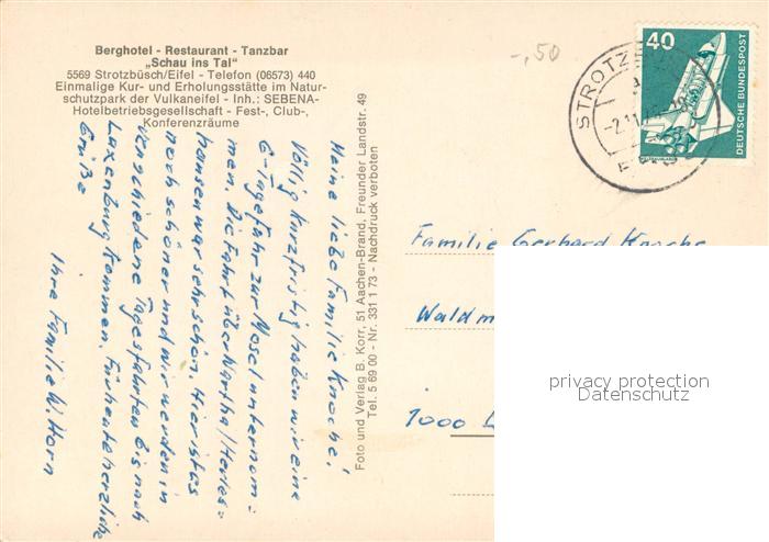 73749612 alte Postkarte Strotzbuesch Berghotel Schau ins Tal Thermalquelle Gastraum postalisch gelaufen Erhaltung siehe scans [WerneD78] KatCode: 11110007233071