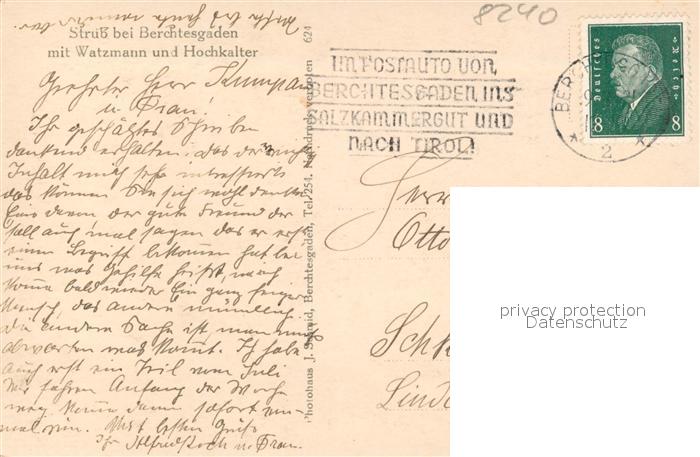 43494737 alte Postkarte Strub mit Watzmann und Hochkalter postalisch gelaufen Erhaltung siehe scans [WerneD78] KatCode: 11110009172117