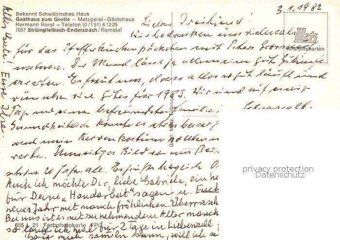72772212 Struempfelbach Weinstadt Gasthaus zum Gretle postalisch nicht gelaufen Erhaltung siehe scans [AndreD76] KatCode: 11110008119091