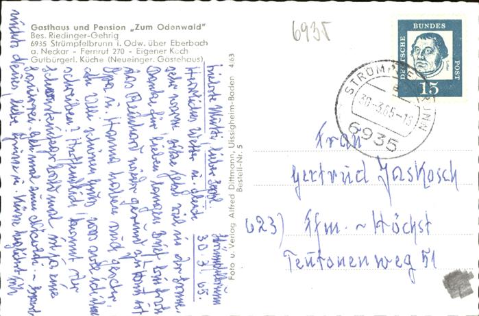 41258152 Struempfelbrunn Gasthaus Pension Zum Odenwald Riedinger Gehrig KatCode 11110008225118