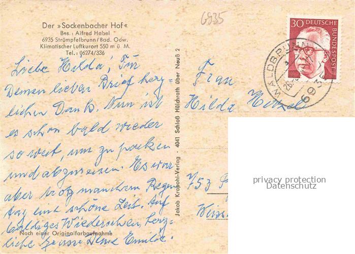 74047676 alte Postkarte Struempfelbrunn Waldbrunn Der Sockenbacher Hof postalisch gelaufen Erhaltung siehe scans [WerneD78] KatCode: 11110008225118